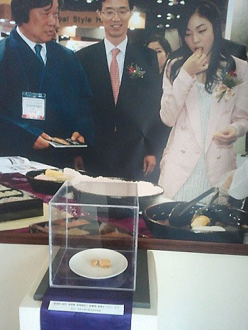 박물관의 한 관계자는 "다섯 달 전 일산 킨텍스에서 열린 행사에 참석한 김연아 선수가 한 입 먹었던 한과를 잘 보관하고 있다가 3~4일 전부터 전시를 시작했다"며 "김연아 선수가 한식 홍보 대사를 맡고 있고, 한식의 일종인 한과를 소개하는 차원에서 이 같은 전시를 계획했다"고 해명했다.