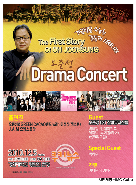 ‘오준성 드라마’ 콘서트는 40인조 오케스트라 연주로 대규모 프로젝트를 진행한다. 오준성 감독은 ‘꽃보다 남자’ O.S.T로 인기를 모았으며, 드라마 ‘맨땅에 헤딩’, ‘검사 프린세스’, ‘드림’, ‘칼잡이 오수정’, ’왕과 나’ 등에서 음악감독 겸 작곡자로서 활약해왔다. 한국 작곡가로서는 최초로 올해 2월 싱가포르 최대 공연장인 에스플러네이드(Esplanade)에서 자신의 이름을 내건 드라마 콘서트를 열어 화제를 모았다.