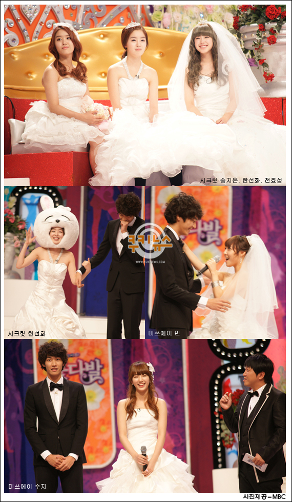 걸 그룹 시크릿, 씨스타, 미쓰에이, 걸스데이는 웨딩드레스를 입고 아름다움을 과시했다는 후문이다. 특히 유명 디자이너의 웨딩드레스를 직접 골라 패션 취향을 엿볼 수 있었다.