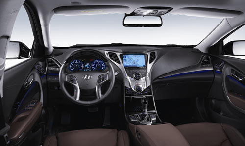 현대차는 “내년 1월 출시 예정인 신형 그랜저는 1986년 첫 출시 이후 25년 동안 쌓아온 그랜저의 명성을 계승한 고급 세단”이라며 “인테리어는 활강하는 날개 이미지를 구현하고 위엄과 품격, 감성적 인터페이스가 돋보일 수 있도록 한 것이 특징”이라고 밝혔다. 현대차는 역동적이며 강인한 인상을 주는 Y자형 크러쉬패드와 고급스러운 느낌이 풍기는 센터페시아에 포인트를 줬다.