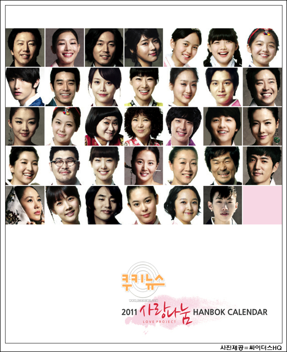 오는 20일부터 인터넷 사이트 1300k(http://www.1300k.com/)를 통해 독점 판매되는 ‘싸이더스HQ 사랑나눔 한복 캘린더’는 김수로, 김신영, 데니안, 박소현, 박재범, 박주미, 방은희, 서신애, 선우선, 솔 비, 송중기, 엄기준, 여욱환, 오광록, 이수혁, 임정은, 장 혁, 장희진 등 34명의 스타가 참여했다.