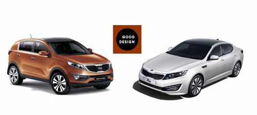 [쿠키 경제] 기아자동차는 21일 K5(수출명 옵티마·오른쪽)와 스포티지R(수출명 스포티지·왼쪽)이 미국 디자인상 ‘2010 굿디자인 어워드’에서 수송 디자인 분야 수상작으로 선정됐다고 밝혔다.