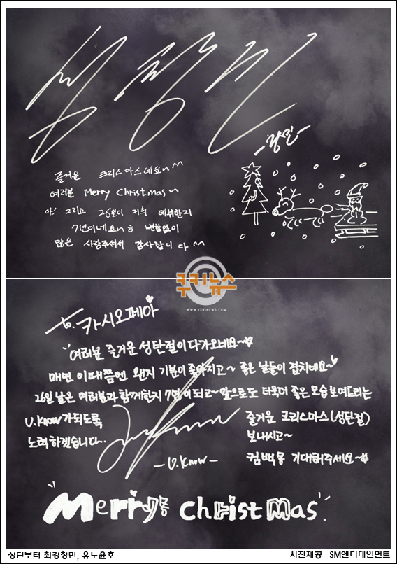 [쿠키 연예] 남성그룹 동방신기의 유노윤호와 최강창민이 크리스마스를 맞아 친필 인사를 남겼다.