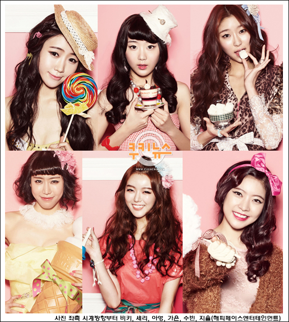 달샤벳의 소속사 해피페이스엔터테인먼트는 29일 네이버 뮤직을 통해 리더 비키(22)를 포함해 세리(20), 지율(19), 아영(19), 가은(18), 수빈(16)의 얼굴을 공개했다.
