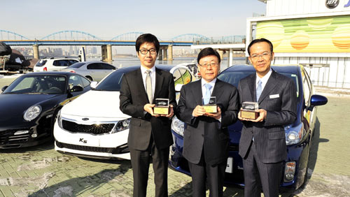 한국자동차기자협회는 20일 서울 반포동 한강시민공원 내 선상클럽 마리나제페에서 올해의 차 시상식을 갖고 기아자동차 측에 트로피를 전달했다. 또 부문별로 퍼포먼스상은 포르쉐 911, 디자인상은 K5, 그린카상은 도요타 하이브리드카 프리우스에 돌아갔다(사진).