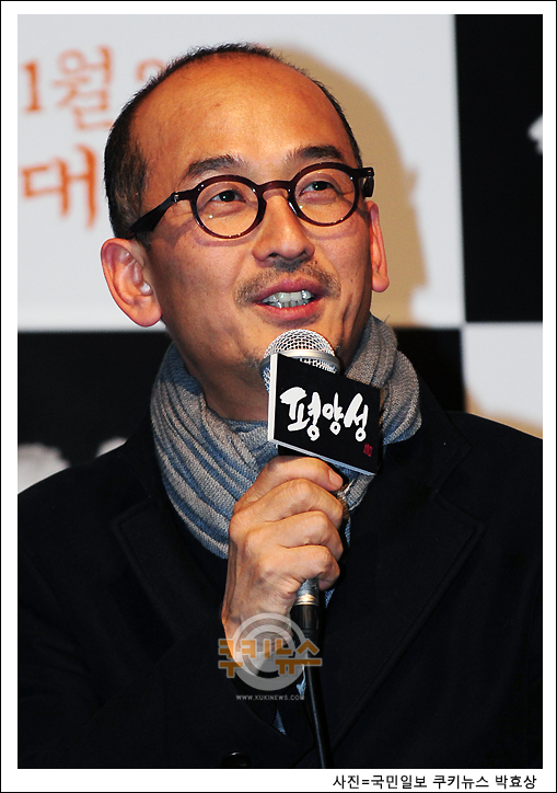<왕의 남자>를 예로 들며 “<왕의 남자>도 다인칭 구조였다. 이 구조는 극의 몰입을 방해하는 단점이 있다. <평양성>도 많은 인물이 동시에 나와 전쟁 이야기를 풀어간다. 고구려의 사면을 다뤘다. ‘거시기’(이문식)와 ‘갑순이’(선우선)의 이야기도 있고, ‘남건’(류승룡)과 ‘남생’(윤제문)의 이야기도 있다. 전쟁영화의 대결 구도가 아니라 신비극처럼 보이게 찍으려고 했다”고 말했다.