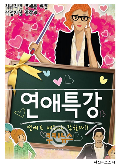 연애의 명강의로 통하는 ‘연애특강’은 현재 절찬리에 상연 중이다. 다음 달 27일까지 서울 대학로 예술마당에서 관람할 수 있다. 배우 박광용, 홍리나, 신종호, 김리나, 김경화 등이 출연한다.