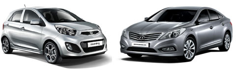 현대·기아자동차는 신형 그랜저(왼쪽)와 신형 모닝(오른쪽)이 각각 환경부 탄소성적표지 인증을 받았다고 30일 밝혔다. 탄소성적표지는 환경부 한국환경산업기술원이 주관해 제품의 생산·사용·폐기 등 전 과정에서 발생하는 온실가스를 이산화탄소로 환산, 배출량을 제품에 표시하는 제도다.
