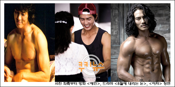 공개된 사진은 지난 2005년 영화 <애인>, 2007년 드라마 ‘8월에 내리는 눈’, 현재 ‘야차’까지 조각 몸매의 변천 과정을 한 눈에 볼 수 있는 모습이다. 파격적 베드신으로 화제를 모은 <애인> 속 조동혁의 몸매는 매끈한 근육과 라인이 잘 살아 있다.