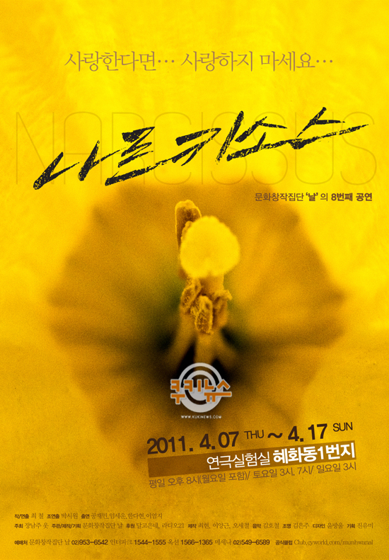 [쿠키 문화] 문화창작집단 날에서 제작한 연극 ‘나르키소스’(연출 최철)가 다음 달 7일부터 관객을 찾아간다.