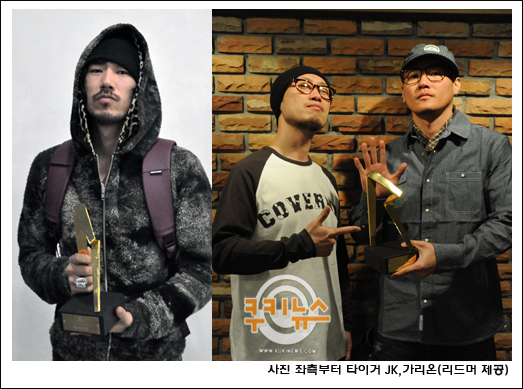 [쿠키 연예] 힙합가수 타이거 JK와 남성듀오 가리온이 힙합·알앤비 시상식 ‘제6회 리드머 어워드’ 올해의 수상자가 됐다.