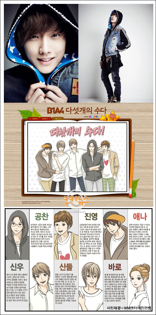 B1A4는 지난 6일 웹툰 ‘다섯 개의 수다’로 이름을 알린 신예다. 웹툰 인기 덕분에 ‘만화를 찢고 나온 아이돌’이라는 별명을 얻었다.