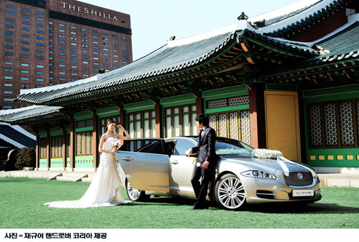 [쿠키 경제] 재규어 랜드로버 코리아는 봄철 결혼시즌을 맞아 신라호텔과 업무제휴를 맺고 신라호텔에서 결혼한 신혼부부들을 위해 재규어의 럭셔리 대형세단 ‘올 뉴 XJ’로 공항까지 에스코트하는 ‘웨딩카 서비스’를 제공한다고 17일 밝혔다(사진).