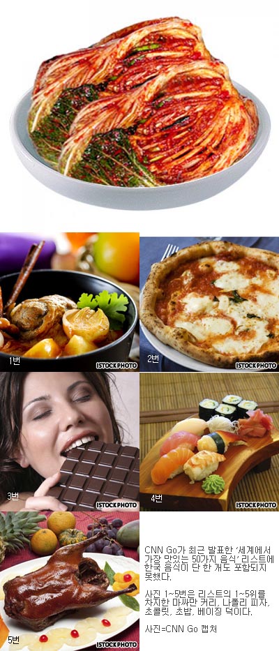 세계적인 언론 매체 CNN이 운영하는 문화·여행·생활 정보 사이트 ‘CNN Go’는 지난 21일 “사람들은 살기 위해 먹지만, 여기 여행할 때 꼭 먹어봐야 할 음식들이 있다”는 소개와 함께 ‘세상에서 사장 맛있는 50가지 음식들’(World's 50 most delicious foods) 리스트를 발표했다.