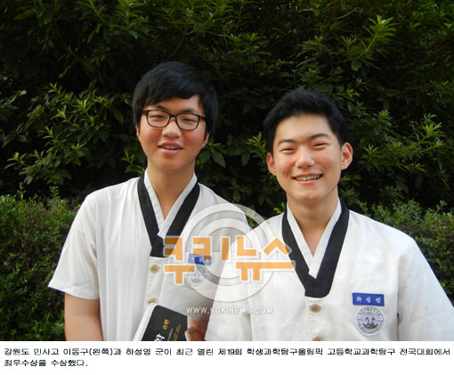 민족사관고와 강릉고 학생팀은 지난 6월 춘천교육지원청 창의교육지원센터에서 열린 ‘제19회 강원도학생과학탐구올림픽 과학탐구실험대회’에서 금상을 수상해 도내 대표로 전국대회에 참가, 수상의 영예를 안았다. 시상식은 오는 10월22일 서울시과학관에서 열리며 최우수상을 받은 민족사관고 학생팀에는 국제교류 학술대회 참가자격도 주어진다.