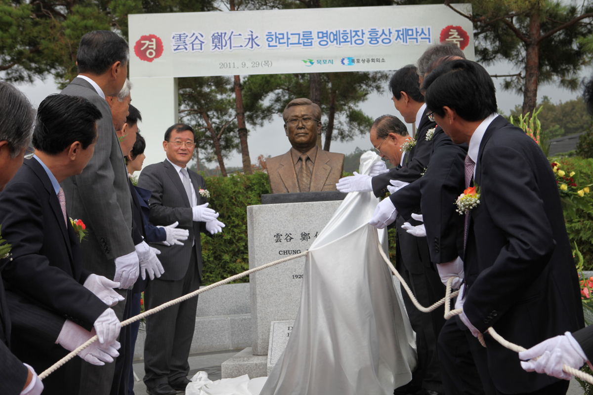 목포시와 목포상공회의소는 정 명예회장이 1996년 최첨단 한라 삼호조선소, 한라펄프제지, 목포신항만 등을 건설해 전남 서남권 지역 발전의 초석을 다지고 대불국가산업단지 활성화의 기반을 마련하는데 크게 기여한 것을 기리기 위해 흉상을 건립했다. 흉상은 높이 205cm(좌대 포함)로 청동 재질이며 조각가 박충흠(전 이화여자대학교 교수)씨가 제작했다.