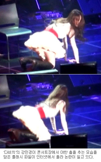 [쿠키 연예] 인기 절정의 여성 듀오 ‘다비치’의 강민경(21)이 콘서트장에서 야한 춤을 추는 모습을 담은 플래시 파일(일명 플짤)이 인터넷에 올라 논란을 낳고 있다.