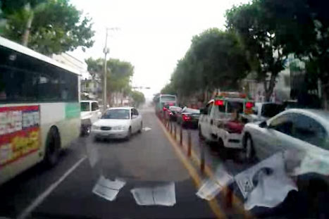 [쿠키 사회] 사고차량을 견인하는 일명 ‘렉카’의 위험천만한 질주장면 동영상이 인터넷에 올라 논란을 일으키고 있다. 렉카 앞면에 장착된 카메라로 촬영된 이 동영상은 신호위반과 과속·난폭 운전, 중앙선 침범 등 불법현장을 보여준다.