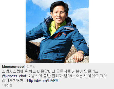 김 지사는 이 같은 지적이 이어지자 자신의 트위터에서 “소방시스템에 위치도 나온답니다. 근무자들이 기본이 안된거죠”라고 적어 빈축을 샀다. 네티즌들은 “소방체계를 119에 물어보시는 게 상식인가요? 긴급전화가 있는 이유에 대해 한 번 더 생각해보세요”라거나 “댁이야말로 기본이 안된 것 같소이다”라고 지적했다.
