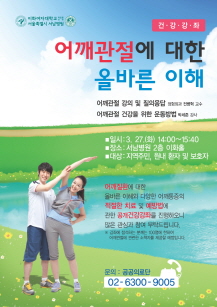 강의는 정형외과 전병혁 교수의 ‘어깨관절 강의 및 질의응답’과 근골격재활운동학회 박세준 스트레칭 강사의 ‘어깨관절 건강을 위한 운동방법’ 순으로 진행될 예정이다.