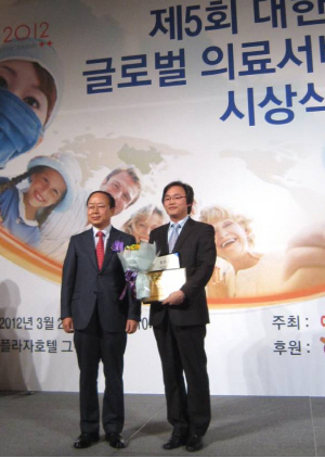 ‘제5회 대한민국 글로벌 의료서비스 대상’은 전문가 조사 30%, 네티즌 조사 40%, 병원 모니터링 30%을 바탕으로 심사해 부문별 수상자를 선정했다. 한솔병원은 1000점 만점에 892.3점을 얻어 대장항문 전문병원 부문 대상 병원으로 선정됐다.