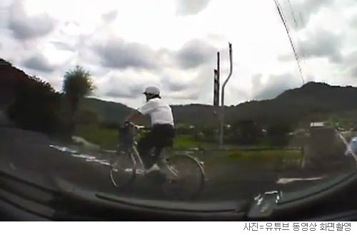 24일 일본 뉴스채널 NNN에 따르면 한 40대 남성 회사원은 최근 일본 효고현 히메지시의 한적한 시골 도로를 운전하다 추돌사고 위기 순간을 담은 차량 블랙박스 영상을 동영상 사이트 ‘유튜브(www.youtube.com)’에 공개했다. 영상에는 남성의 승용차가 도로를 질주하다 좌회전하는 순간 맞은 편에서 자전거를 타고 같은 골목으로 들어가던 중학생을 칠 뻔한 장면이 포착됐다.