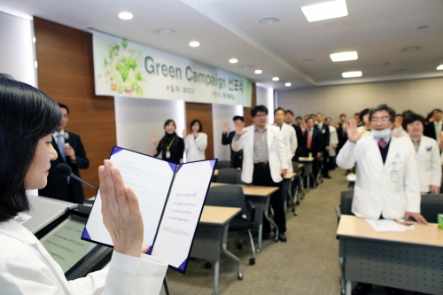 [쿠키 건강] 이대목동병원(원장 김광호)은 29일 건강한 지구를 위해 쓰레기 배출량을 감소시키는 실천방안을 확산시키자는 ‘그린 캠페인’ 선포식을 가졌다.