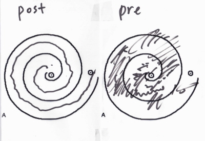 MR guided Focused Ultrasound)을 시도한 결과 손떨림이 멈추는 등의 치료효과를 거뒀다고 19일 밝혔다(사진 시술전(우)과 시술후(좌) 선그리기 테스트).