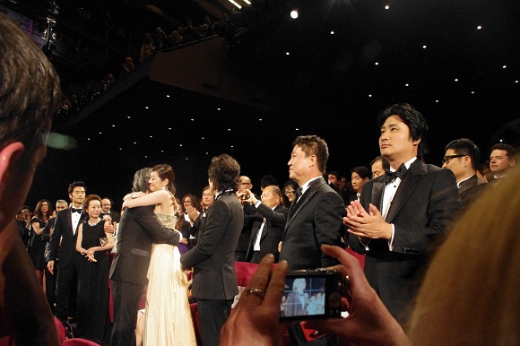 칸국제영화제 메인 상영관인 뤼미에르극장에서 공식 인터내셔널 프리미어 스크리닝이 시작되자 관객들은 2시간 가까운 시간 동안 숨소리조차 내지 않고 관람했다. 중간 중간 임 감독이 관객과의 거리를 좁히기 위해 배치한 요소들에서 웃음이 이는 정도였다. 영화가 끝나자 객석에서는 7분의 기립박수가 이어졌다. 칸 경쟁부문에 진출한 임 감독의 전작 ‘하녀’보다 2분 길어졌다. 칸에서 5분의 기립박수는 관객들의 ‘예우’이다. 예의를 넘어선 박수에 상기된 임 감독과 김효진은 포옹을 나누기도 했다.