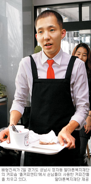 2일 오후 경기도 성남시 정자동 샘물교회 1층 말아톤복지재단의 커피숍 ‘올커피앤티’에서 만난 배형진(30)씨는 일 배우는 재미에 푹 빠져 있었다.