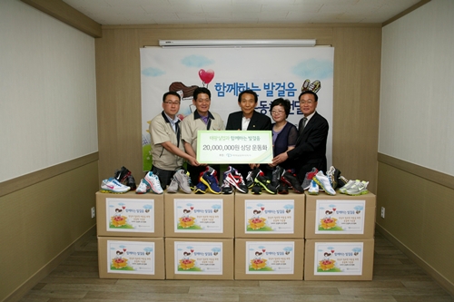 [쿠키 사회] 경남 김해의 향토기업 태광실업㈜이 지역의 불우아동들을 위해 신발을 기증했다.