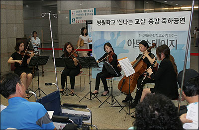 한편 ‘아트 스테이지’는 현대캐피탈·현대카드의 후원으로 한국예술종합학교 구성원들이 소아암 환아와 보육원생 등에게 아름다운 음악공연을 선사하는 재능기부 프로그램이다. 지금까지 전국의 소아암병동과 보육원 등을 순회하며 모두 32차례 공연을 가졌다. 이번 인하대병원 공연은 33번째 공연으로 올 상반기 병원학교에서 진행된 아트케어프로그램 ‘신나는 교실’ 종강을 축하하기 위해 열렸다. 국민일보 쿠키뉴스 박주호 기자 epi0212@kmib.co.kr