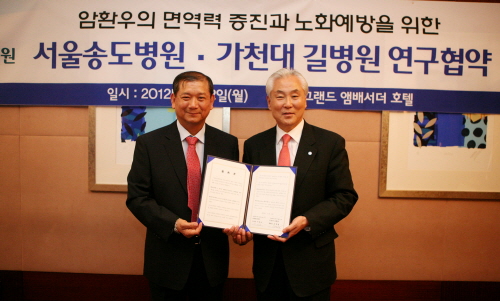 [쿠키 건강] 가천대 길병원은 2일 서울송도병원과 암환자의 면역력증진 및 노화예방 연구를 위한 MOU를 체결했다고 밝혔다.