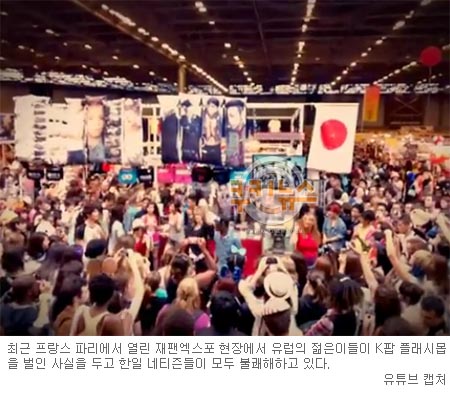 [쿠키 문화] 일본인의 위안부 말뚝 테러 도발로 한일관계가 냉랭해지는 가운데 최근 프랑스 파리에서 열린 재팬엑스포 현장에서 유럽의 젊은이들이 K팝 플래시몹을 벌인 사실을 두고 한일 네티즌들이 모두 불쾌해하고 있다.