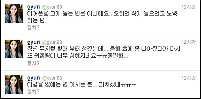 [쿠키 건강] 인기 걸그룹 카라의 리더 박규리(24)가 최근 이명(귀울음)을 앓고 있다고 털어놨다. 박규리는 지난 18일 자신의 트위터를 통해 “이명을 없애는 법 아시는 분? 미치겠네. 지난해 뮤지컬 할 때 생겼는데 올해 초에 좀 나아졌다가 다시 또 귀울림이 너무 심해지네요. 불편해”라며 고통을 호소했다.