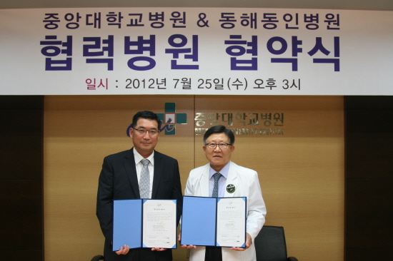 [쿠키 건강] 중앙대병원은 25일 보광의료재단 동해동인병원과 협력병원을 위한 협약식을 가졌다.