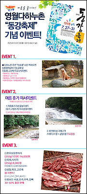 [쿠키 건강] 영월 주천 다하누촌이 강원도 영월 동강유역일원에서 열리는 동강축제를 기념해 다양한 이벤트를 진행한다. 다음달 31일까지 열리는 이번 이벤트는 무료 증정, 시식이벤트와 더불어 다양한 품목의 할인 행사도 함께 진행될 예정이다.