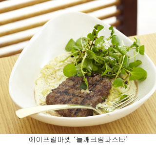 이탈리안 그린 비스트로 에이프릴마켓은 시금치와 피자, 들깨와 크림소스 등 전혀 어울리지 않을 것 같은 재료의 환상적인 궁합으로 호기심을 불러일으킨다.