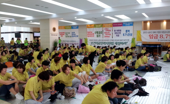 노조 측은 6일 현재 본관 1층 로비에 대자보를 붙인 채 투쟁을 전개하고 있으며, 임금 8.7% 인상과 보육수당 지급, 산별교섭 참여 등을 주장하고 있다.