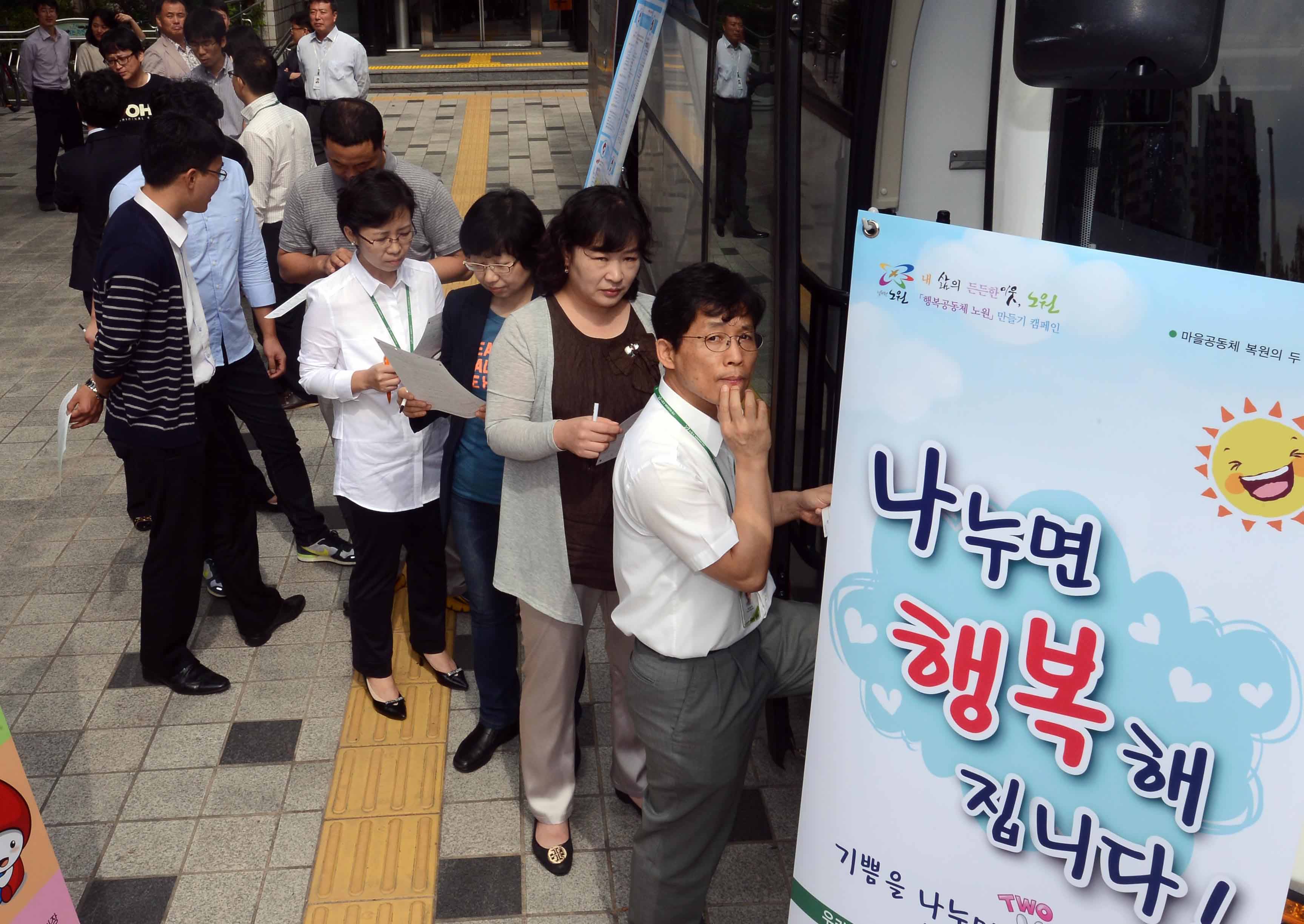 서울 노원구는 27일 노원 보건소앞에서 혈액원 버스 2대를 투입해 구청 직원과 지역 주민들이 참여하는 '헌혈 사랑 나눔 실천'을 펼쳤다. 혈액공급 부족으로 고통받는 이웃에게 따뜻한 사랑의 마음을 나누고
