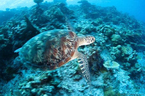 몰디브의 바다는 투명하고 맑다. 바다 수심의 깊이가 깊어질수록 연한 에메랄드색에서 짙은 코발트색으로 변해간다. 몰디브 바닷물의