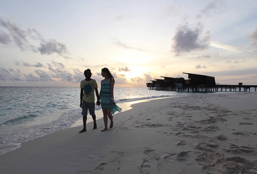몰디브의 바다는 투명하고 맑다. 바다 수심의 깊이가 깊어질수록 연한 에메랄드색에서 짙은 코발트색으로 변해간다. 몰디브 바닷물의