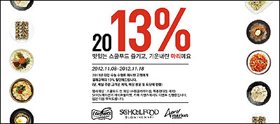 SF이노베이션 관계자는 “올해 힘들게 수능을 치룬 수험생들에게 2013년에 신입생이 되는 기쁨을 누리라는 취지로 13% 할인이라는 이벤트를 기획하게 됐다”며 “수험생 여러분들이 할인 혜택도 받고 맛있는 음식과 함께 수험으로 지친 몸과 마음을 힐링 받으며 즐거운 시간 보냈으면 하는 바람”이라고 전했다. 국민일보 쿠키뉴스 박주호 기자 epi0212@kmib.co.kr