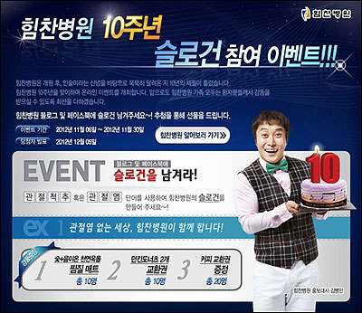 힘찬병원 관계자는 “힘찬병원이 지금까지 성장할 수 있었던 것은 바로 환자와 가족 여러분들의 무한한 신뢰와 애정 덕분”이라며 “10주년 온라인 이벤트를 통해 네티즌들과 함께 축하와 격려를 나누는 소통 행사를 마련했다”고 말했다.