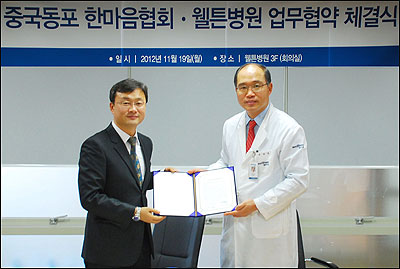 [쿠키 건강] 웰튼병원은 지난 19일 중국동포 한마음협회와 상호 교류협력 및 의료 서비스 지원을 위한 업무협약(MOU)을 체결했다고 21일 밝혔다.