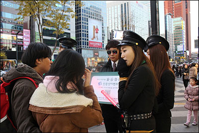 놀라운 것은 불심검문에 응하는 행인들의 반응이다. 소지품을 검사하는 여경들과 검문 내내 즐거운 대화를 주고받으며, 화기애애한 분위기를 연출하고 있는 것. 여경들 역시 일반 경찰이라고 하기에는 상당히 화려한 외모에 상냥하기 이를 데 없어 눈길을 끈다.
