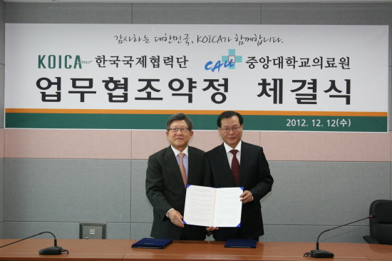 [쿠키 건강] 중앙대의료원은 12일 한국국제협력단(KOICA)과 대외 무상개발협력사업 수행에 있어 유기적인 업무협조관계 구축을 위한 업무협조약정을 체결했다고 밝혔다.