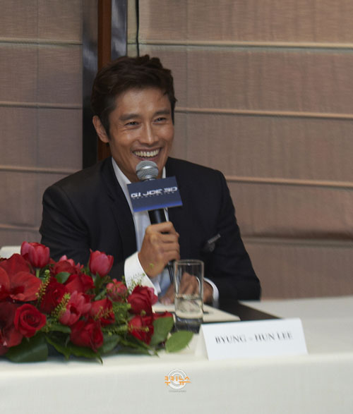 이병헌은 12일 오후 5시(이하 현지시간) 홍콩 그랜드하얏드호텔에서 영화 ‘지.아이.조2’ 3D 예고편 및 하이라이트 영상 공개 아시아 프레스데이 행사에 존 추 감독과 함께 참석했다.