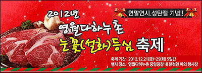 [쿠키 건강] 강원도 대표 한우마을 영월 다하누촌이 오는 21일부터 25일까지 성탄기념 ‘2012 영월 다하누촌, 설화 등심 축제’를 개최한다.