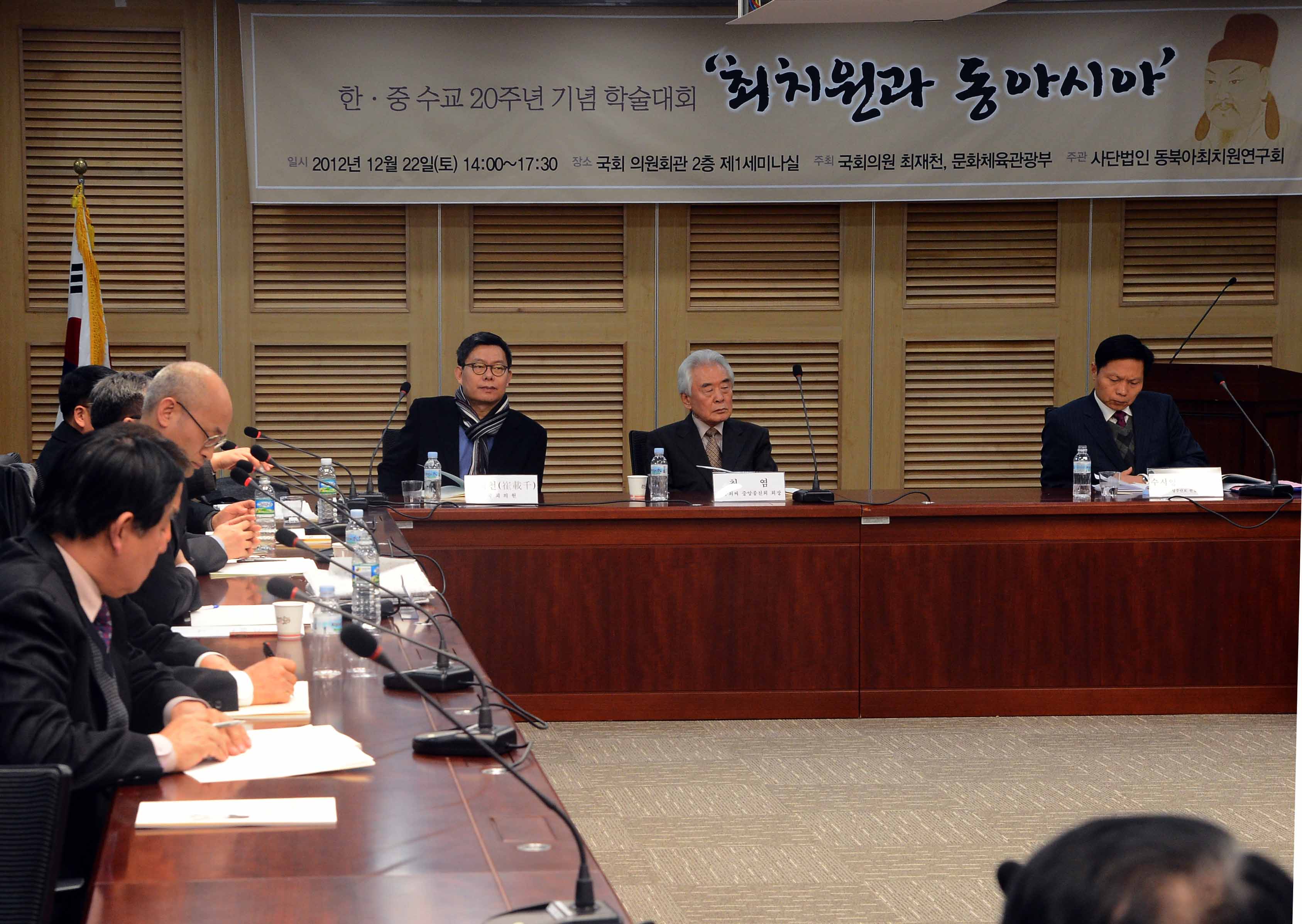 한. 중 수교 20주년을 맞아 21일 오후 서울 여의도 국회의원회관 제1세미나실에서 "최치원과 동아시아"라는 주제로 국회의원 최재천, 문화관광체육부 주최로 한. 중 세미나가 열렸다.